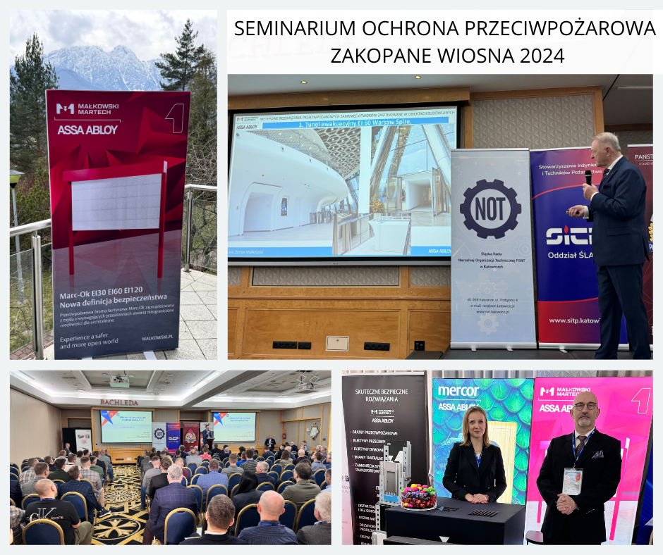 Jak w praktyce rozwiązać problemy ochrony przeciwpożarowej budynków? Czym kierować się przy wyborze urządzeń ppoż? To tylko jedne z pytań, na które odpowiadaliśmy podczas minionej konferencji „ZAKOPANE WIOSNA 2024” zorganizowanej przez SITP Oddział Śląski, Komendę Wojewódzką PSP Katowice, Koło przy KW PSP. Nasz ekspert techniczny dr inż. Zenon Małkowski udzielał zainteresowanym praktycznych wskazówek, prezentując między innymi nietypowe rozwiązania przeciwpożarowe od Małkowski-Martech S.A. Dziękujemy organizatorom za miłą atmosferę, liczne dyskusje oraz możliwość wymiany doświadczeń. Z niecierpliwością czekamy na kolejne spotkanie.