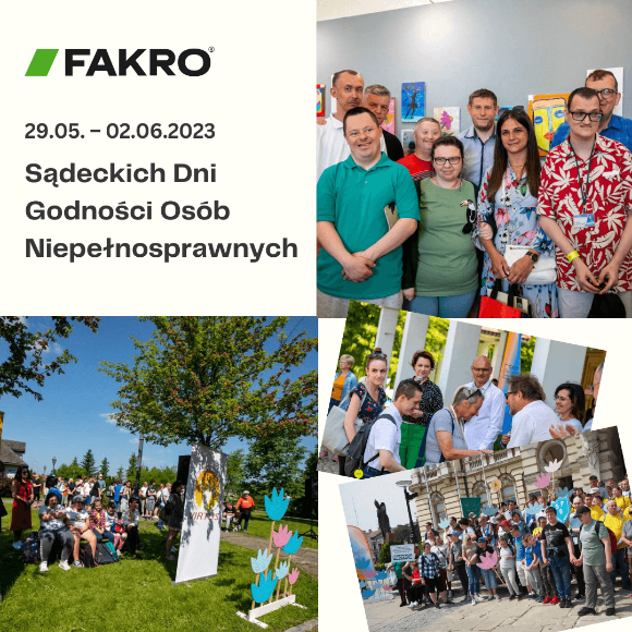 FAKRO było partnerem Sądeckich Dni Godności Osób Niepełnosprawnych, w ramach których przez kilka dni organizowane były różne wydarzenia i atrakcje zachęcające do spędzenia wspólne czasu, poprzez ciekawe i kreatywnych zabawy oraz warsztaty dla osób w każdym wieku.