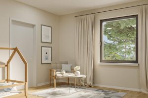 Rozmiar okien to kolejny istotny czynnik wpływający na stopień doświetlenia wnętrz. Planując przeszklenia w domu powinniśmy uwzględnić wielkość i funkcję poszczególnych pomieszczeń, a także indywidualne preferencje domowników. Podczas określania rozmiaru okien oblicza się stosunek ich powierzchni do podłogi. W przypadku pomieszczeń, w których domownicy spędzają co najmniej 2 godziny dziennie, minimalny wymóg to 1:8. Dla uzyskania optymalnego doświetlenia zaleca się jednak proporcje 1:5 lub 1:4. By uzyskać większą powierzchnię przeszklenia, można wybrać systemy z węższymi profilami. Taką budowę mają np. modele Vetrex LUM’UP i vetrex AluView. Ponadto w mniejszych oknach rozwierno-uchylnych zamiast standardowego układu dwuskrzydłowego lepiej zastosować opcję jednoskrzydłową. Warto również pamiętać, że dodatkowe elementy dekoracyjne, np. szprosy, mogą ograniczać dostęp światła słonecznego.