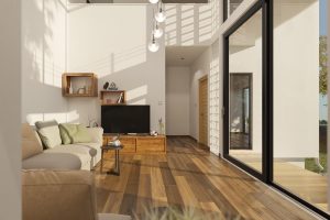 Rozmiar okien to kolejny istotny czynnik wpływający na stopień doświetlenia wnętrz. Planując przeszklenia w domu powinniśmy uwzględnić wielkość i funkcję poszczególnych pomieszczeń, a także indywidualne preferencje domowników. Podczas określania rozmiaru okien oblicza się stosunek ich powierzchni do podłogi. W przypadku pomieszczeń, w których domownicy spędzają co najmniej 2 godziny dziennie, minimalny wymóg to 1:8. Dla uzyskania optymalnego doświetlenia zaleca się jednak proporcje 1:5 lub 1:4. By uzyskać większą powierzchnię przeszklenia, można wybrać systemy z węższymi profilami. Taką budowę mają np. modele Vetrex LUM’UP i vetrex AluView. Ponadto w mniejszych oknach rozwierno-uchylnych zamiast standardowego układu dwuskrzydłowego lepiej zastosować opcję jednoskrzydłową. Warto również pamiętać, że dodatkowe elementy dekoracyjne, np. szprosy, mogą ograniczać dostęp światła słonecznego.