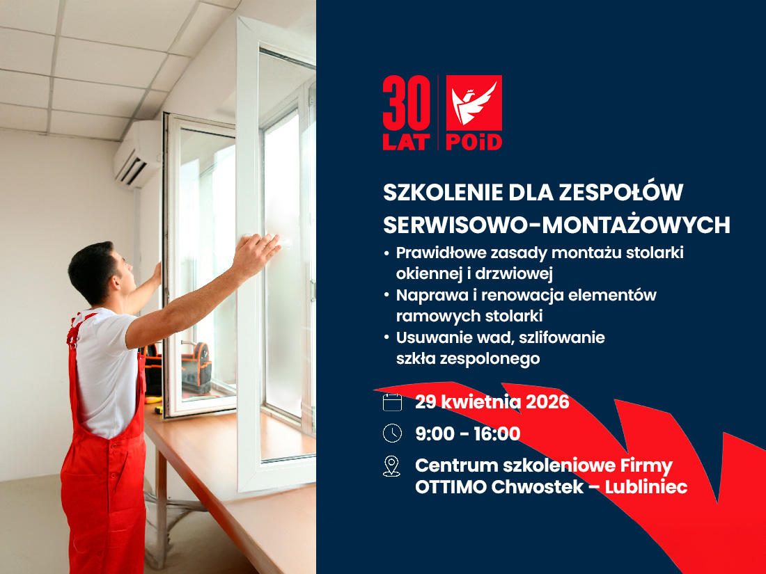 Zapraszamy na szkolenie dla zespołów serwisowo-montażowych stolarki budowlanej: 29 kwietnia 2026 r. w Centrum Szkoleniowym Firmy OTTIMO w Chwostku koło Lublińca. W odpowiedzi na potrzeby branży, prog…