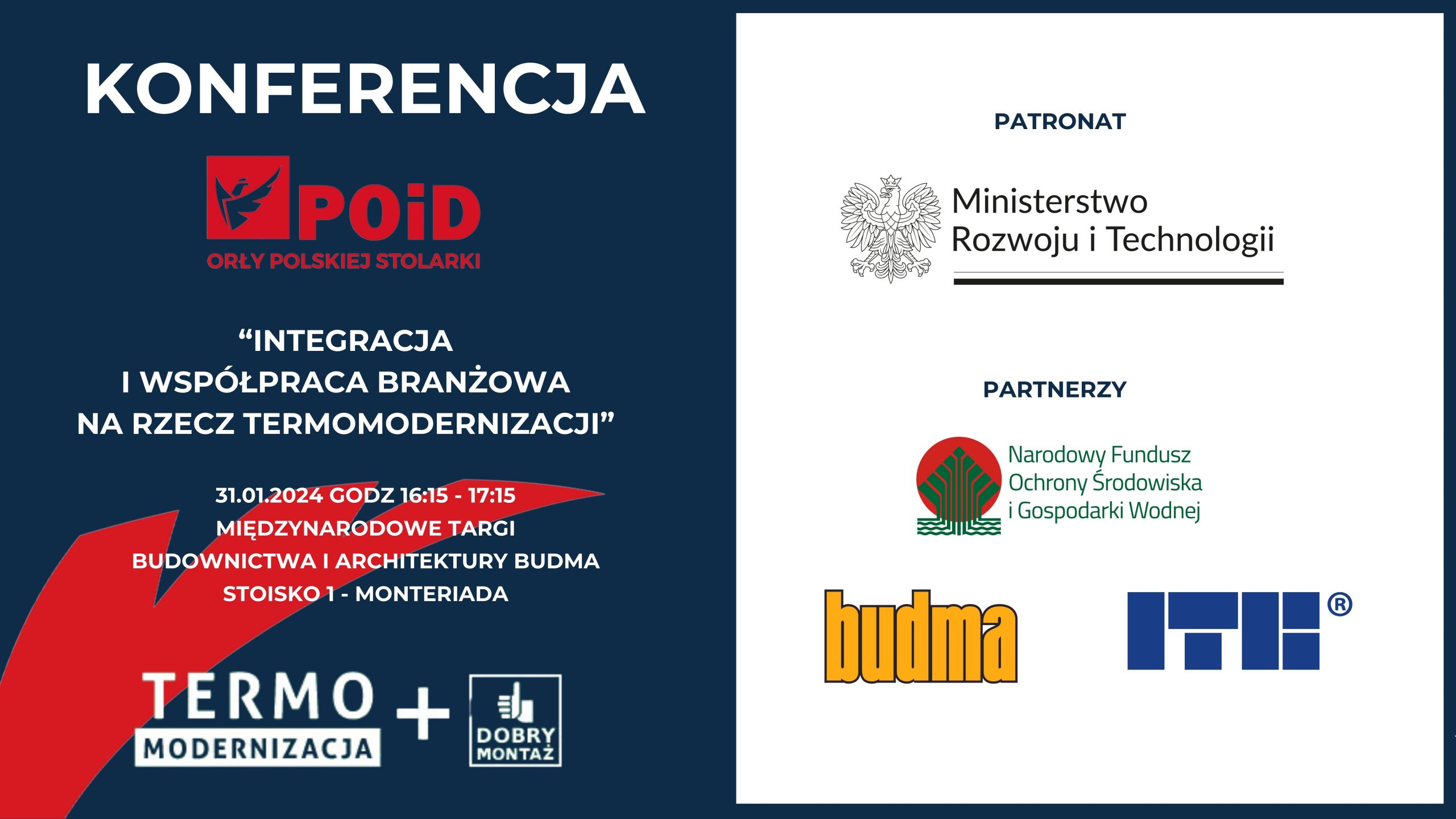 Partnerzy nowej edycji kampanii „TERMOMODERNIZACJA+DOBRY MONTAŻ”: FAKRO, GLASSOLUTIONS, GREE, HÖRMANN, KLIMAS WKRĘT-MET, KRISHOME, MIDEA, NYXON, PORTA, PROLINE, POLSKIE STOWARZYSZENIE PRODUCENTÓW STYROPIANU, SOMFY, SOUDAL, STALPRODUKT-ZAMOŚĆ, WIŚNIOWSKI
