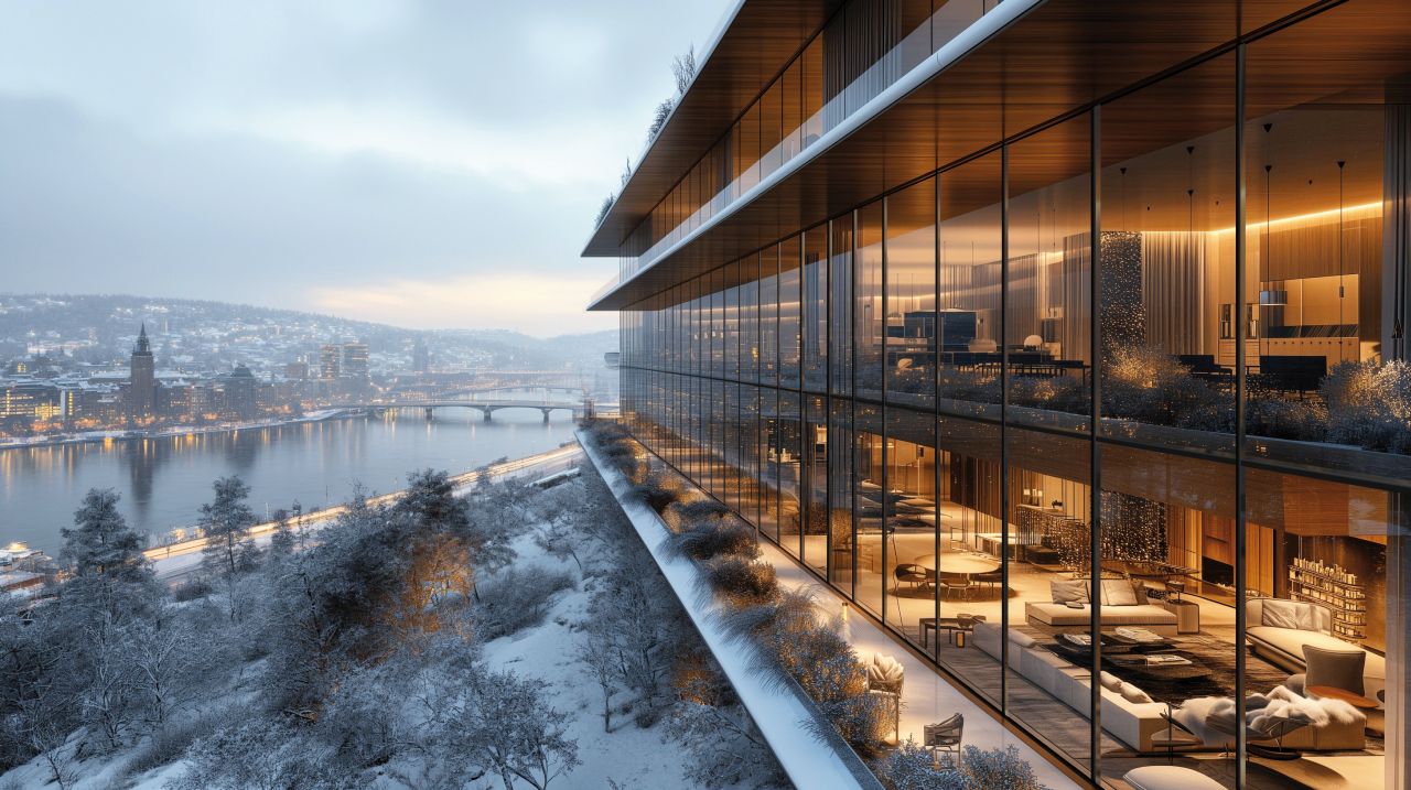 Typowe dla państw skandynawskich długie zimy i krótkie dni, przekładające się na niewielką liczbę godzin ze słońcem, wpłynęły na dążenie tamtejszych architektów do maksymalnego wykorzystania naturalnego światła. Duże okna, często sięgające od podłogi do sufitu, są charakterystyczne dla budownictwa północnej Europy i pozwalają z jednej strony doświetlić wnętrza, z drugiej zaś – otworzyć je na otaczającą budynek przyrodę. Dzięki zastosowanemu w fasadzie MB-MM50N połączeniu słup-rygiel o wysokiej nośności, projektanci zyskują możliwość tworzenia imponujących szklanych ścian, w których ciężar szkła może wynosić nawet 880 kg. Rozwiązanie Aluprof wpisuje się w założenia architektury skandynawskiej z jeszcze jednego powodu – pozwala bowiem na konstruowanie popularnych w tamtym regionie segmentów z profili fasadowych zamiast okiennych kwater stałych. Jednocześnie MB-MM50N pozostaje kompatybilny z popularnym na Półwyspie Skandynawskim system mocowania Adjufix.
