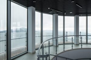Wszystkie przeszklenia zewnętrzne wykonano z wykorzystaniem szkła typu AviSafe z powłoką przeciwsłoneczną. Rozwiązanie to ogranicza nagrzewanie wnętrza i poprawia komfort użytkowników, jednocześnie pełniąc funkcję ochrony ptaków. Subtelny wzór widoczny dla ptasiego wzroku pozostaje niemal niewidoczny dla człowieka, nie zakłócając odbioru panoramy z wieży widokowej. W obiekcie zlokalizowanym w zielonym sercu uzdrowiska taki aspekt środowiskowy miał znaczenie nie mniejsze niż parametry techniczne.
