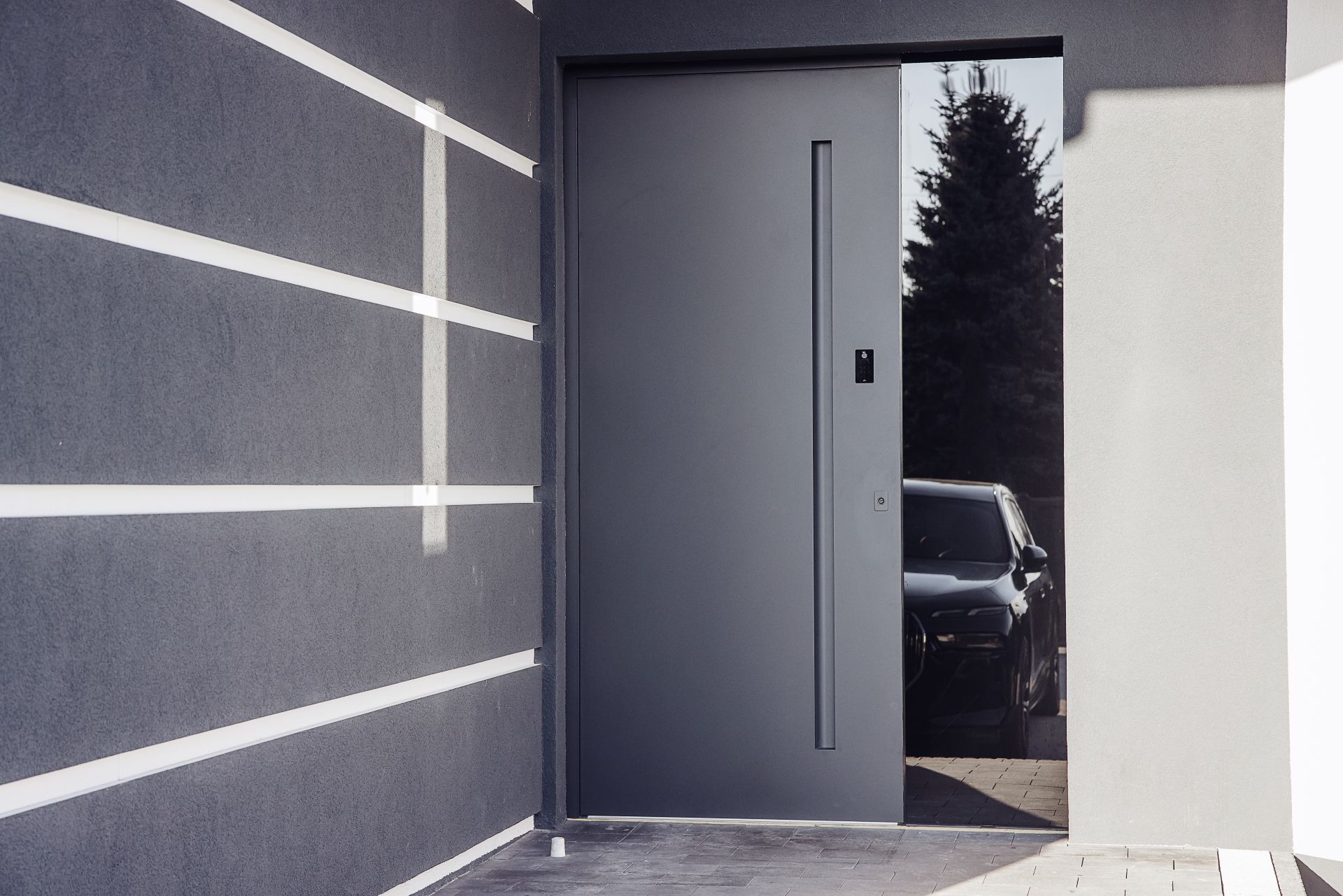 Nowy wariant drzwi AS 75P odpowiada na potrzebę maksymalnej spójności. Z tego powodu panel drzwiowy i szyba doświetla bocznego są zlicowane w jednej płaszczyźnie. Do tej pory podobny efekt był typowy głównie dla rozwiązań drewnianych. Teraz można go uzyskać w aluminium. W praktyce oznacza to wyraźnie „czystszą” formę na styku drzwi i doświetla oraz większą swobodę projektową tam, gdzie liczy się nowoczesna, minimalistyczna kompozycja.