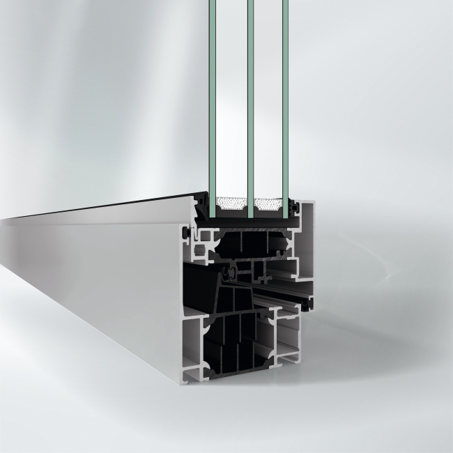 Przekrój przez okno blokowe Schüco AW CT 72 BS z ukrytym skrzydłem Fot.: Schüco