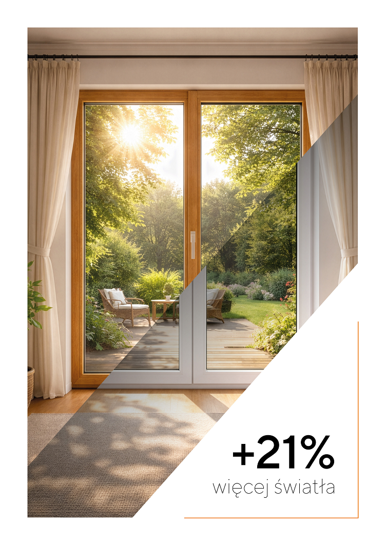 VIEW to system zaprojektowany z myślą o maksymalnym doświetleniu wnętrz, lekkości formy i większym otwarciu domu na otoczenie. Dzięki redukcji widocznych profili oraz obniżonemu złożeniu ramy i skrzydła pozwala uzyskać nawet do 21% więcej naturalnego światła w pomieszczeniach w porównaniu do standardowych rozwiązań. To propozycja dla nowoczesnej architektury, w której liczą się światło, przestrzeń i minimalistyczna estetyka.