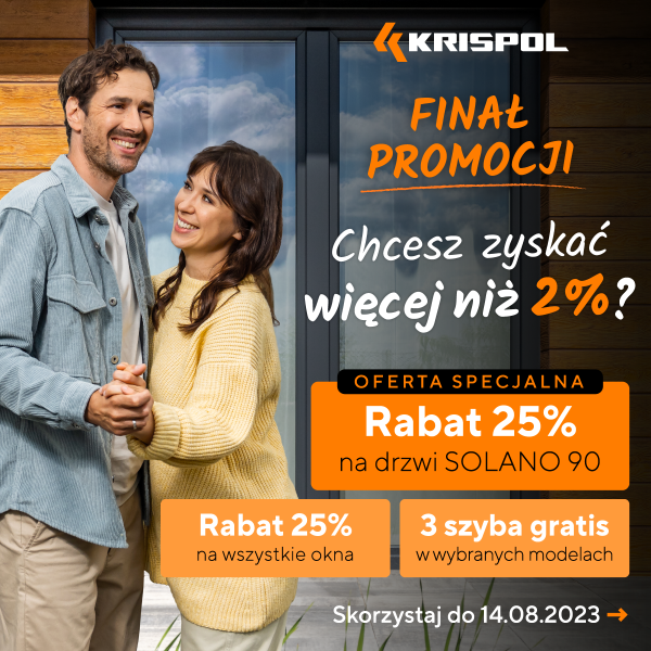 Planując budowę lub wykończenie domu, dobrze jest wybrać sprawdzone rozwiązania, które będą nam służyć przez lata. Tylko teraz decydując się na okna i drzwi zewnętrzne KRISPOL, zyskujesz więcej niż 2%!