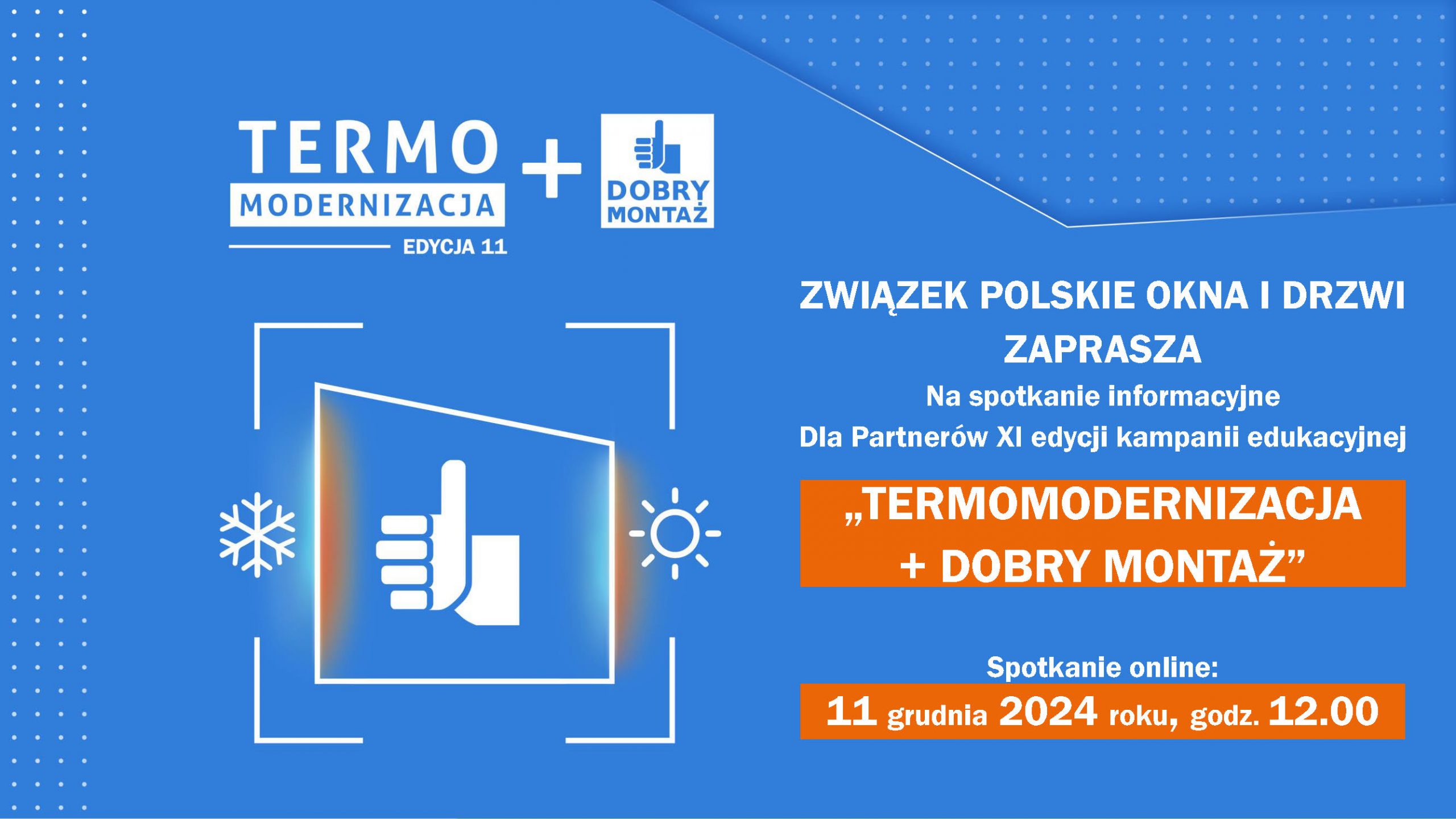 Zapraszamy do udziału w spotkaniu informacyjnym dla Partnerów nowej 11. edycji kampanii “TERMOMODERNIZACJA+DOBRY MONTAŻ”.