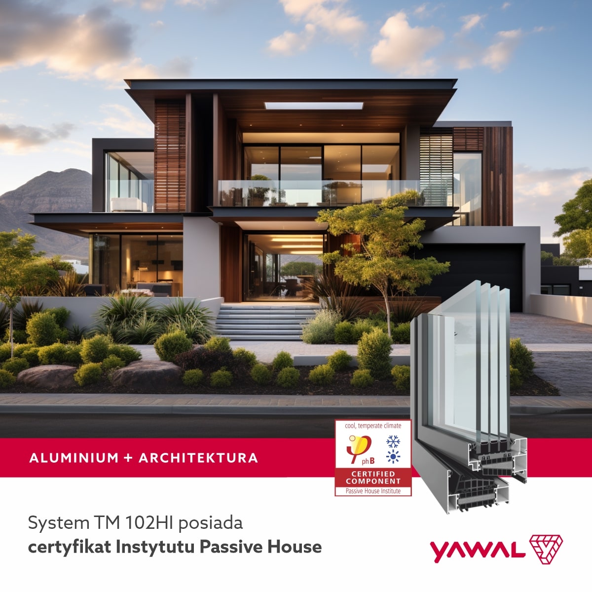 System okienny TM 102HI firmy Yawal już w sierpniu roku 2023 uzyskał prestiżowy certyfikat Passive House, co jest potwierdzeniem wysokich standardów efektywności energetycznej i zrównoważonego rozwoju w branży budowlanej.